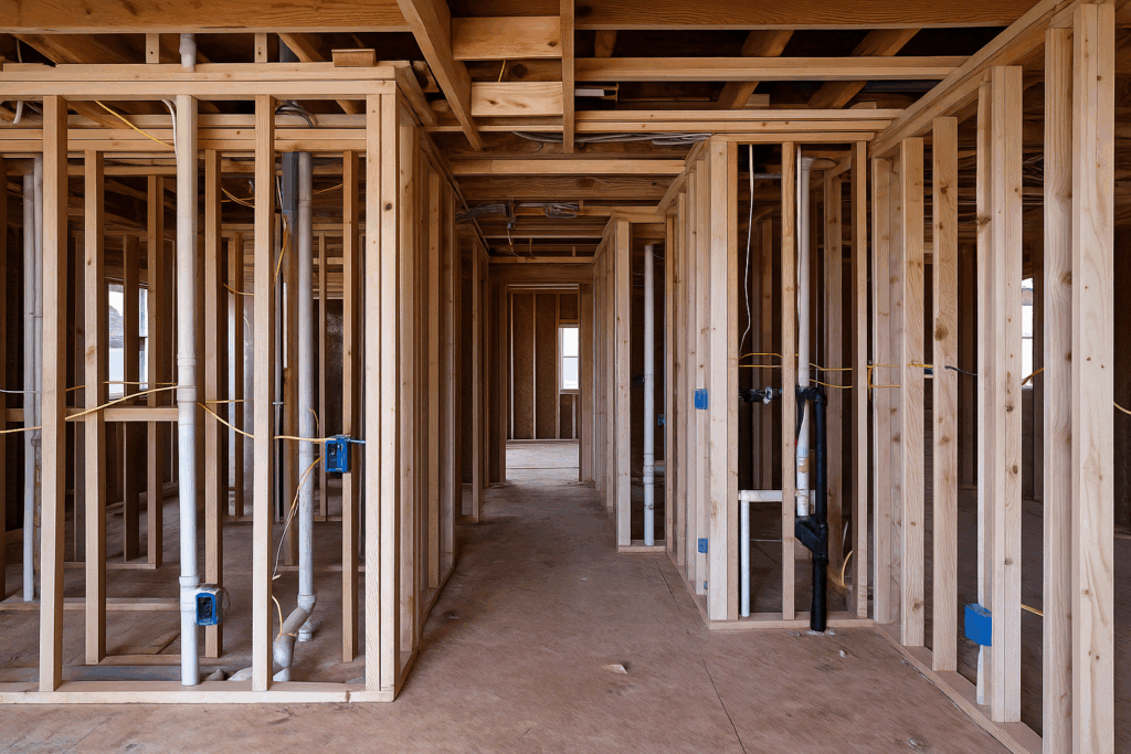 Pre-drywall inspections are typically performed on a new construction home. Pre-drywall inspections are useful as after drywall is installed, it may conceal improper construction practices.